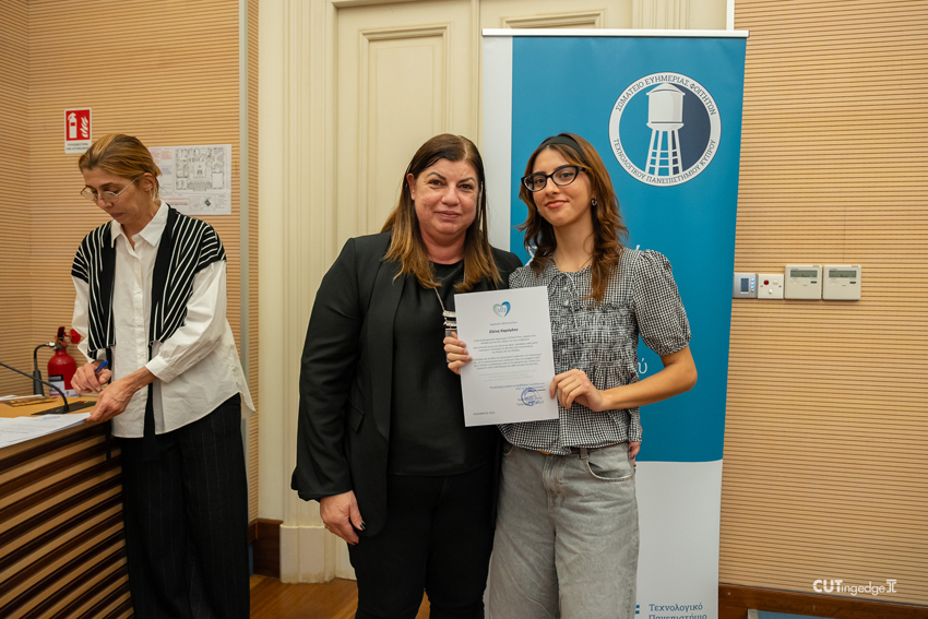 From the Cyprus University of Technology, the event was honoured by the presence of the Rector, Professor Panagiotis Zafeiris, the President of the Students’ Welfare Association, Mr. Auxentis Zemenides, the Head of the Student Welfare Service, Mr. Vasilis Protopapas, members of the Association, and the scholarship recipients.