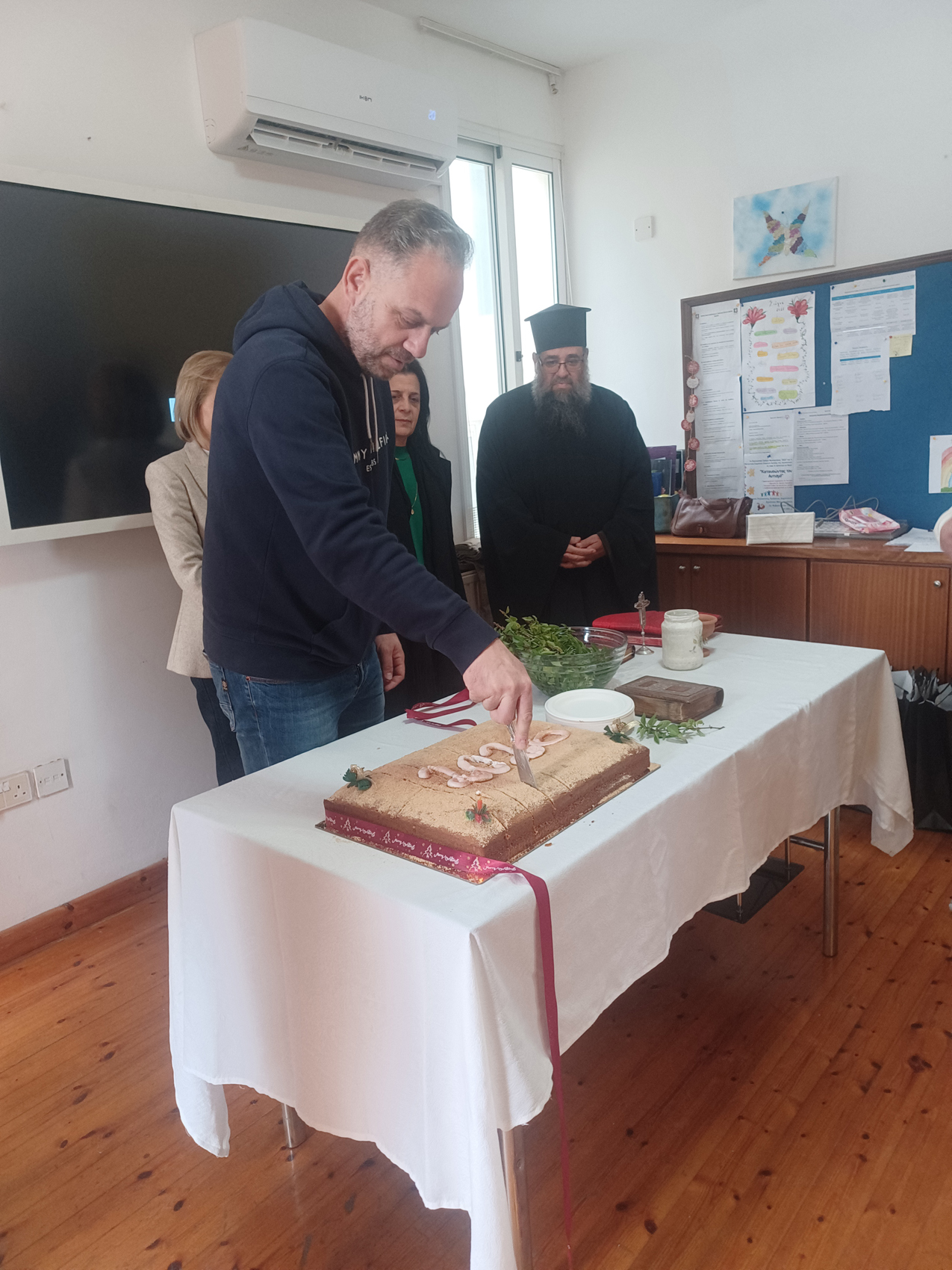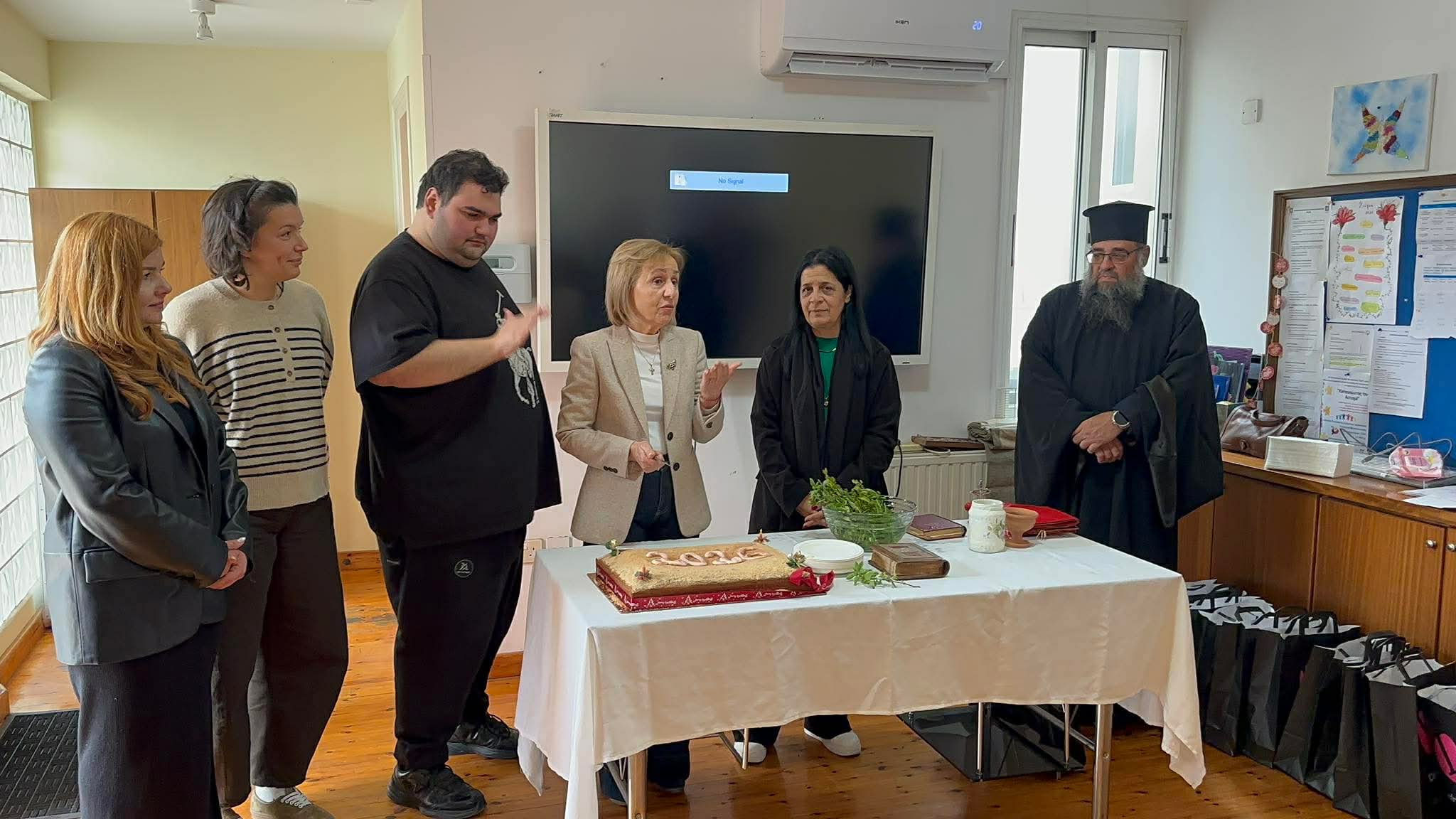 Μετά τον αγιασμό και την κοπή της βασιλόπιτας, ακολούθησε συνάντηση ενημέρωσης. Η Πρόεδρος του Παγκύπριου Συνδέσμου για Άτομα με Αυτισμό, κα. Τασούλα Γεωργιάδου, παρουσίασε το έργο, τη λειτουργία και τις τρέχουσες ανάγκες του Κέντρου, ενώ πραγματοποιήθηκε ουσιαστική ανταλλαγή απόψεων με τους παρευρισκόμενους.